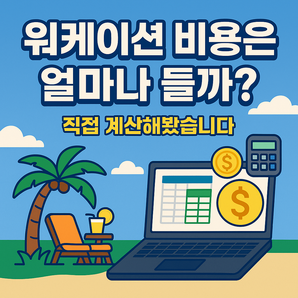 일하면서 여행을 즐길 수 있는 워케이션, 많은 분들이 궁금해하는 건 바로 “비용”입니다. 오늘은 1인 기준, 1주일 워케이션을 가정하고 실제 비용을 항목별로 계산해봤습니다.목차1. 워케이션이란?2. 예상 비용 요약 3. 항목별 상세 분석 4. 여행·출장과 비교 5. 비용 절약 팁1. 워케이션이란?Work(일) + Vacation(휴가)의 합성어. "여행지에서 원격근무하며, 일과 여가의 균형을 실현하는 근무 방식"입니다.2. 예상 비용 요약 (1인/7일 기준) 항목 예상비용내용숙소비35만 원1박 5만 원 × 7일 (중급 숙소 기준)교통비10만 원KTX 왕복 기준 (서울↔부산)식비10만 원1일 1.5만 원 기준업무 공간7만 원공유오피스, 회의실 포함카페/소모성3만 원커피, 프린트, 노트 등여가비용5만 원입장..